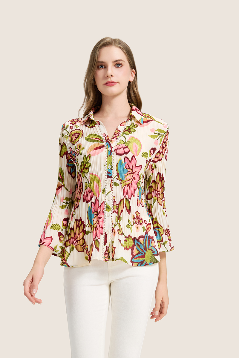 Περιγραφή: Εμπριμέ μπλούζες από μαλακό σιφόν ανακύκλωσης με επένδυση από μαλακό και ελαστικό ύφασμα.